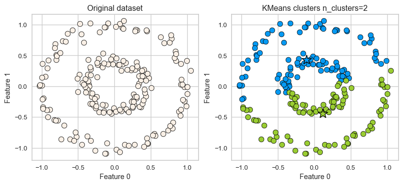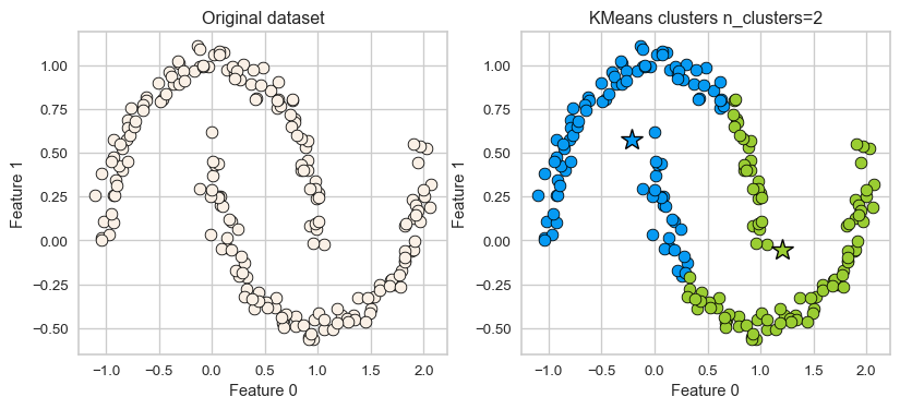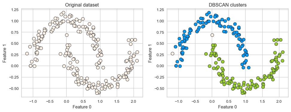 eps: determines what it means for points to be “close”min_samples: determines the number of neighbouring points we require to consider in order for a point to be part of a cluster