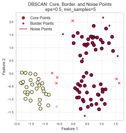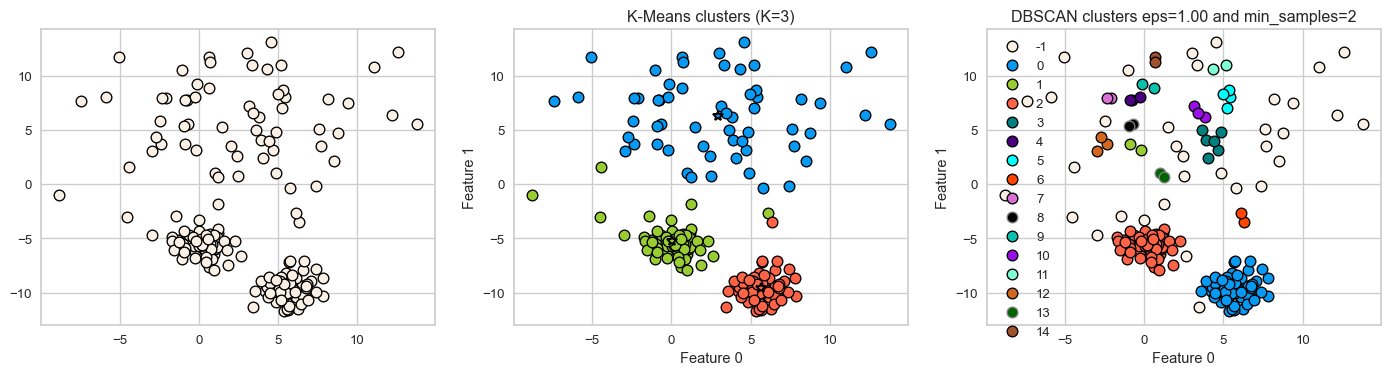 Experience how \(\epsilon\) (eps) and min_samples affect what counts as a cluster.